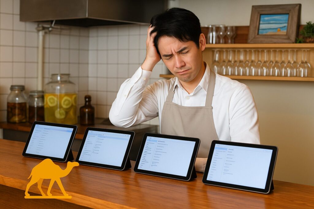 タブレットがたくさんあると、どこから注文が入ったかいちいち1つずつ確認する手間があります。また、実は注文が入っていたのに、見落としてしまい、注文がキャンセルになってしまう。せっかくの売上アップの機会を逃すばかり、プラットフォームによってはそれがマイナス点となり、店舗の上位表示が下がってしまうこともあります。Camelならタブレットが1枚なので、確認が簡単で見落としもありません。タブレットの切り忘れによる深夜の受注、というトラブルも回避できます。